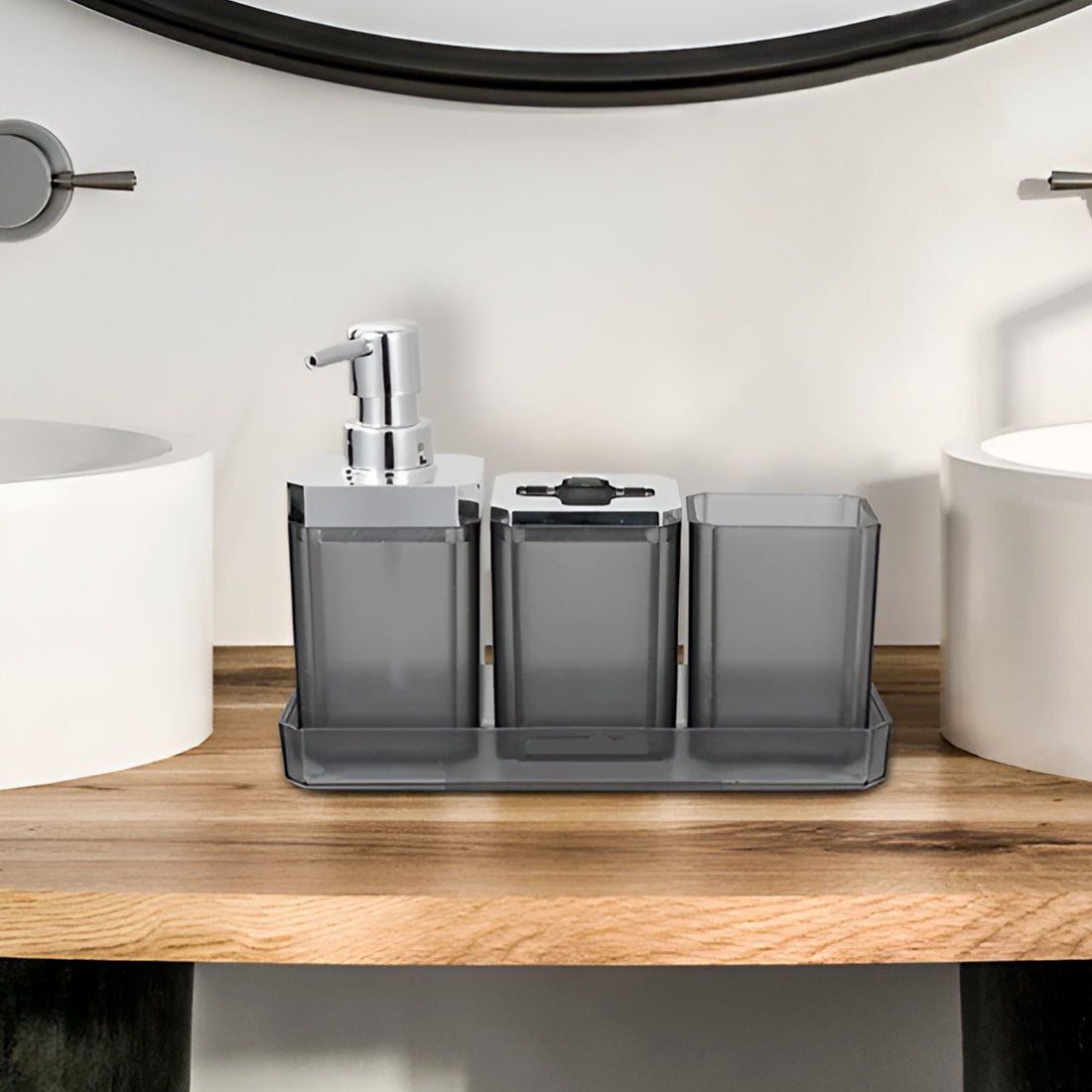 Este set de accesorios de baño combina funcionalidad y estilo para ofrecerte una experiencia organizada...