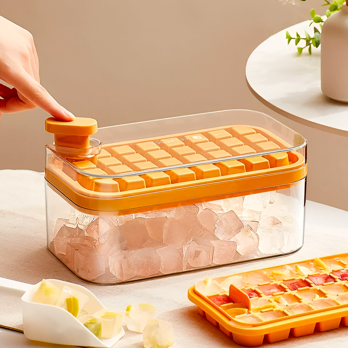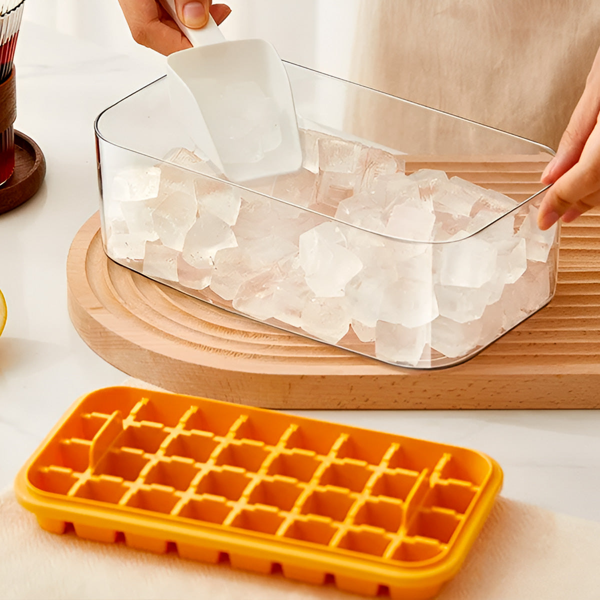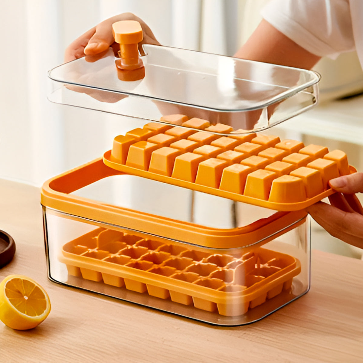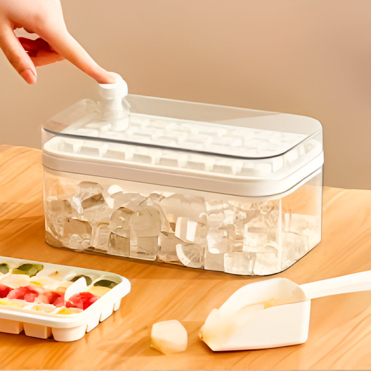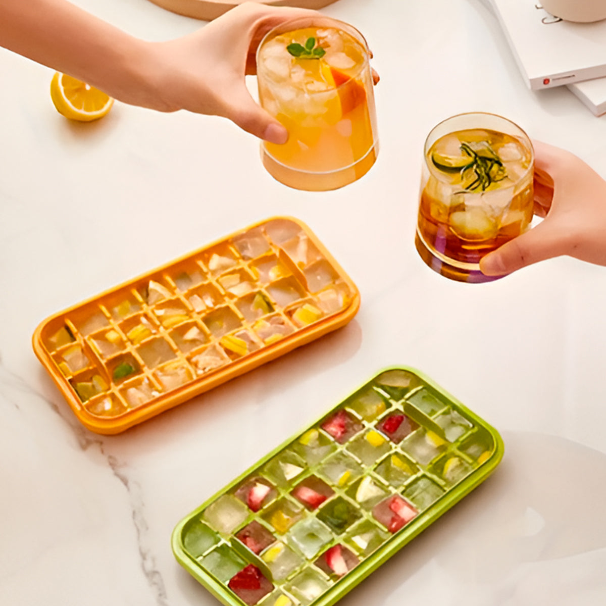 Este molde innovador permite sacar los cubitos con un solo clic, eliminando la necesidad de flexionar o torcer para extraer el hielo, lo que facilita y agiliza su uso. Incluye dos moldes con 32 compartimentos cada uno y una espátula pequeña para recoger el hielo con facilidad. Además, es ideal para enfriar bebidas como cócteles, whisky, jugos o té, y también sirve para hacer pudines, chocolates o frutas, siendo perfecto para reuniones, fiestas o como regalo.