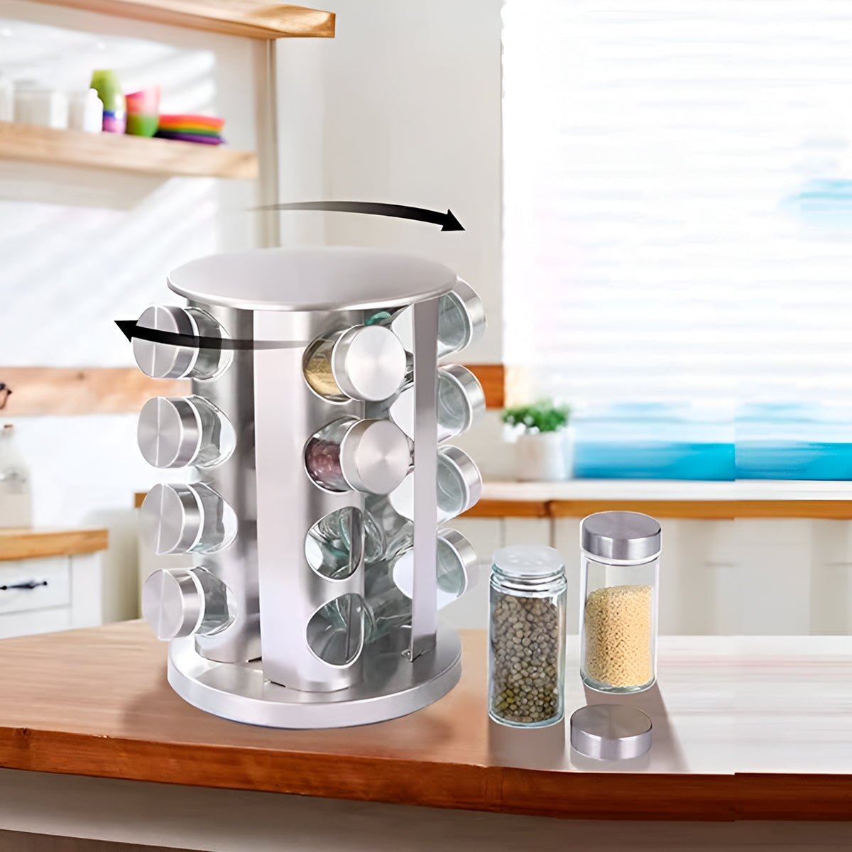 Este set incluye 1 estante para especias de acero inoxidable y 16 frascos de vidrio con tapa también de acero inoxidable, ideal para mantener tus condimentos organizados, frescos y siempre a la vista. Su diseño moderno y compacto se adapta perfectamente a cualquier cocina, aportando funcionalidad y un toque elegante.