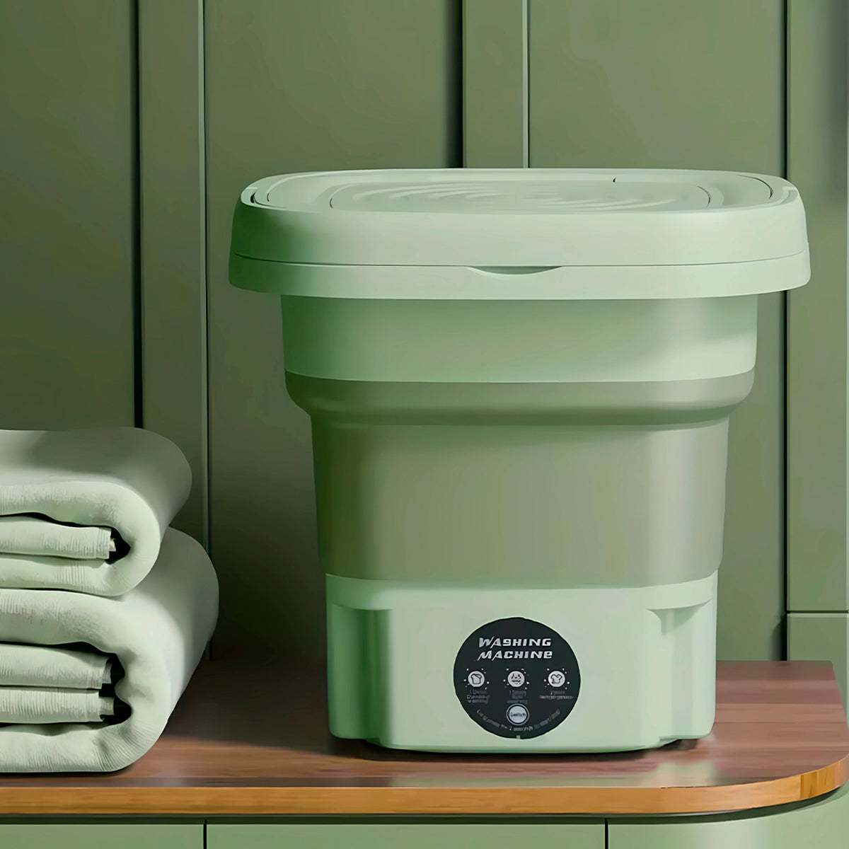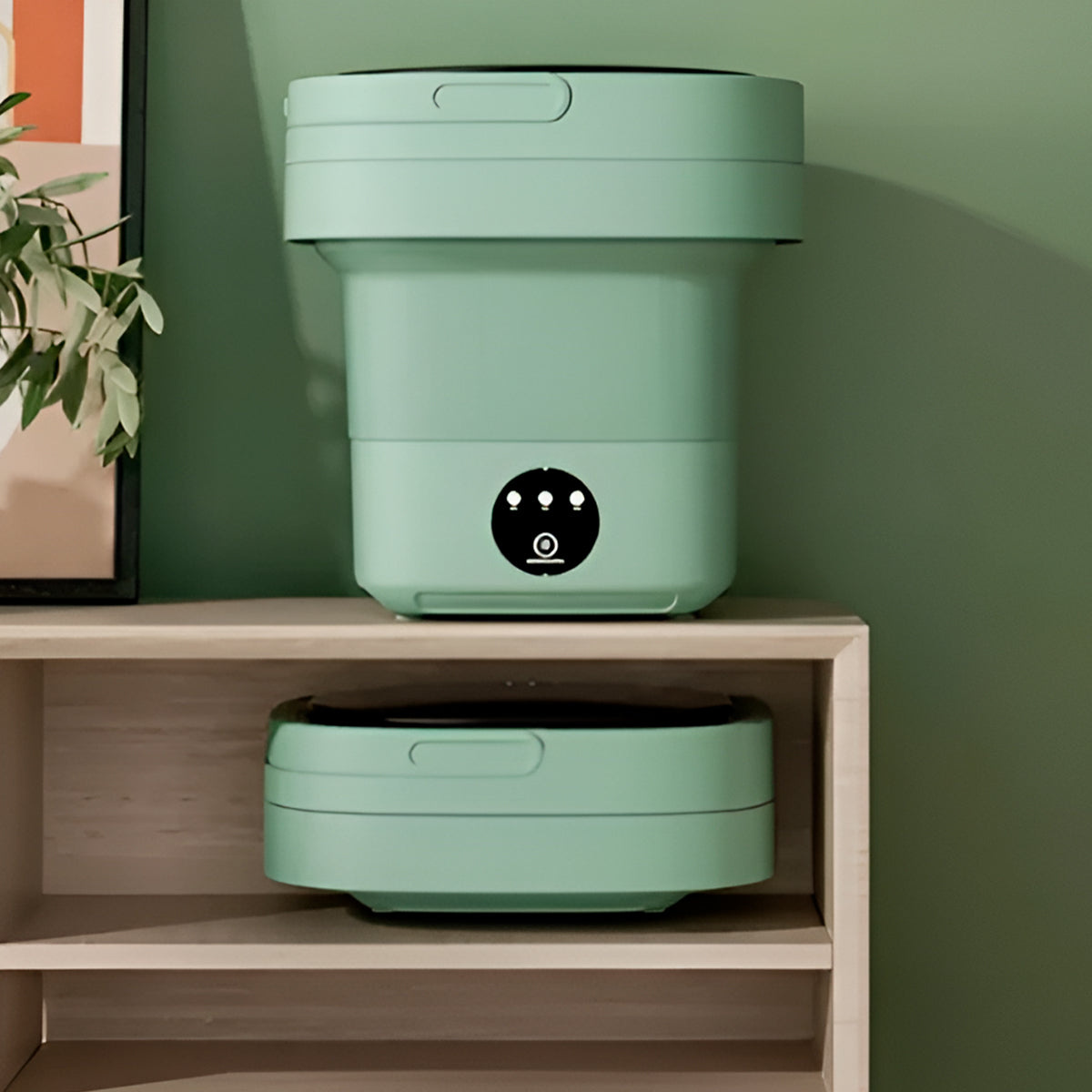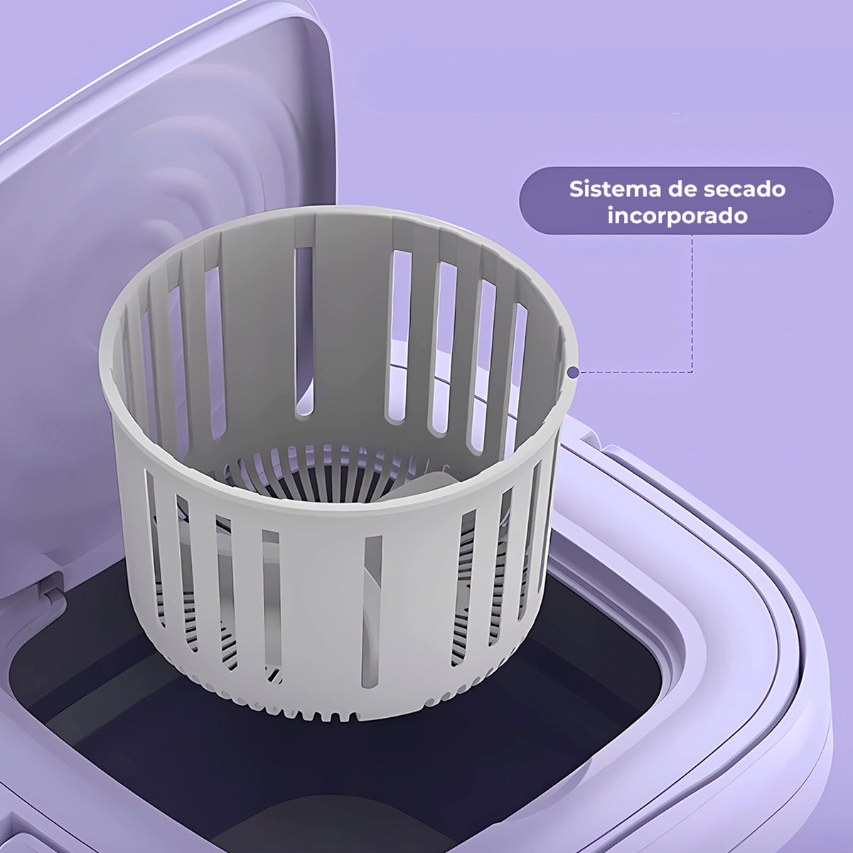 La Mini Lavadora Portátil Plegable con Centrifugado es la aliada ideal para lavar ropa delicada de forma rápida y eficiente. En solo 15 minutos, podrás limpiar prendas como ropa de bebé, ropa interior, blusas, camisas y otras piezas pequeñas, gracias a su sistema de lavado suave y centrifugado incorporado.