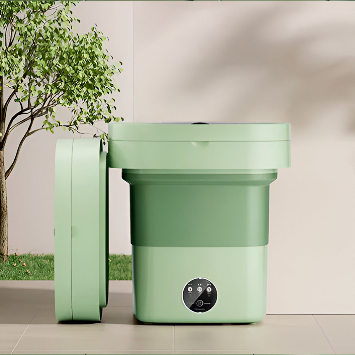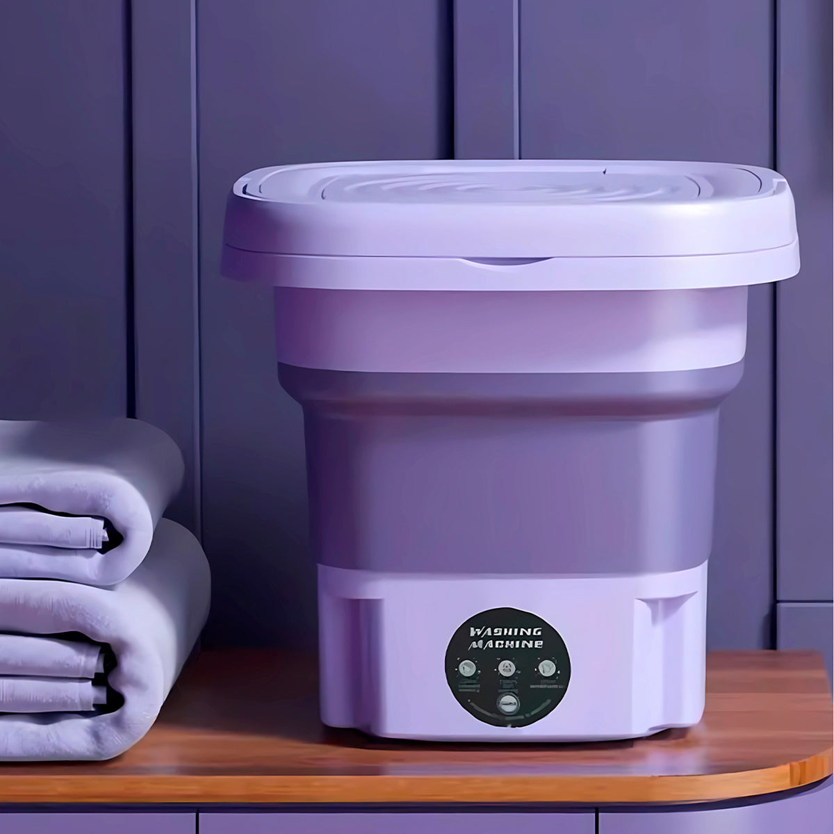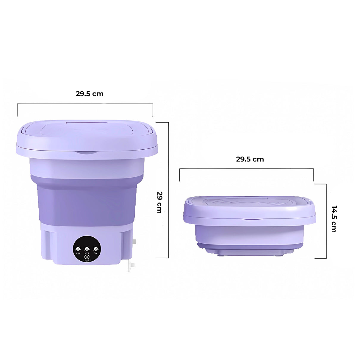 La Mini Lavadora Portátil Plegable con Centrifugado es la aliada ideal para lavar ropa delicada de forma rápida y eficiente. En solo 15 minutos, podrás limpiar prendas como ropa de bebé, ropa interior, blusas, camisas y otras piezas pequeñas, gracias a su sistema de lavado suave y centrifugado incorporado.
